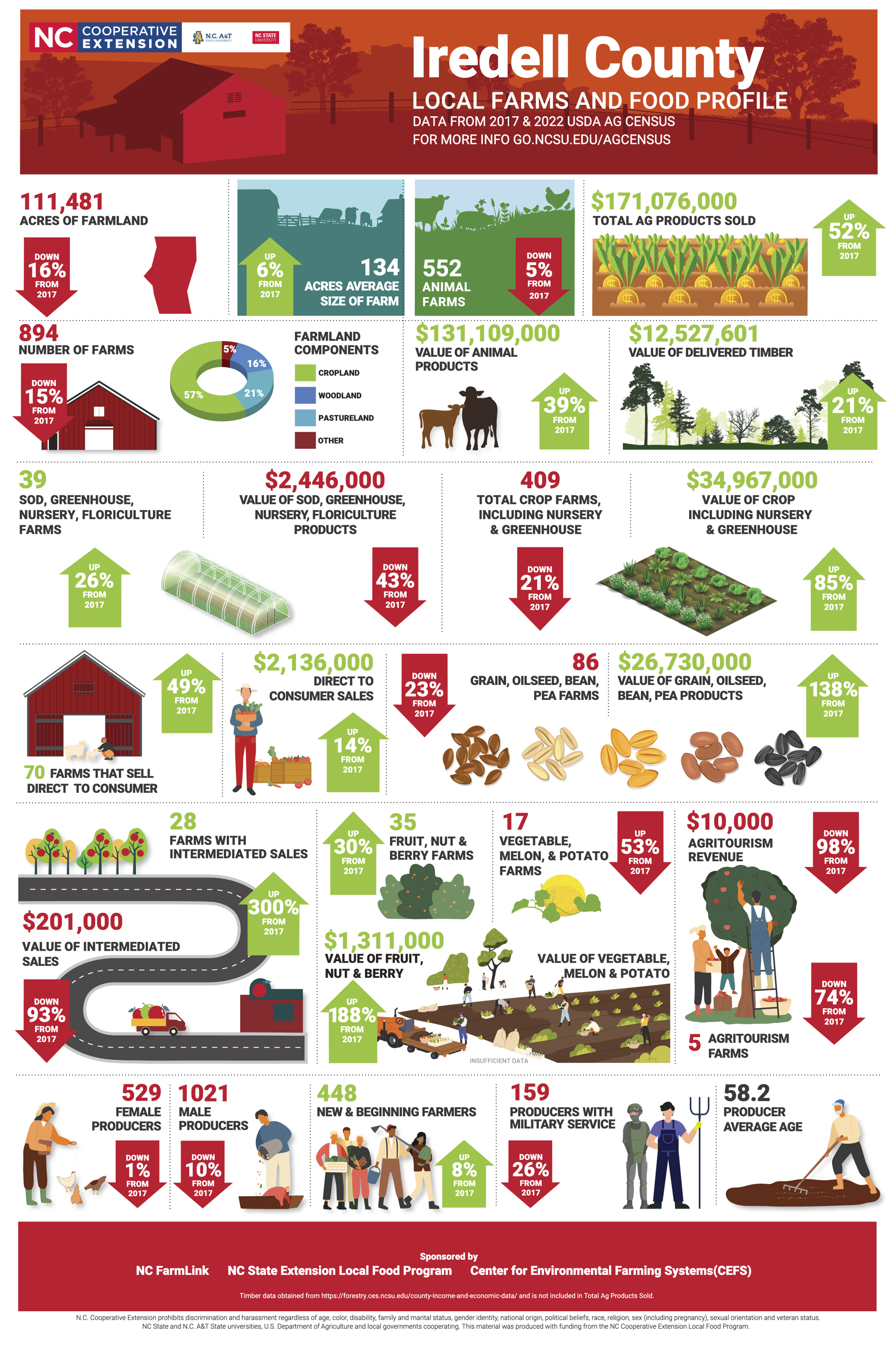 This Local Farms and Food infographic is designed for farm advocates, educators, economic developers, planners, local food supporters, and community members to understand the impact of agriculture in their county and region on the overall economy of NC. The financial indicators provided can help local and state government agencies design ways to support agricultural businesses as critical components of vibrant and resilient local and rural economies. Each region in North Carolina presents a unique set of opportunities for sustainable economic growth and entrepreneurship.